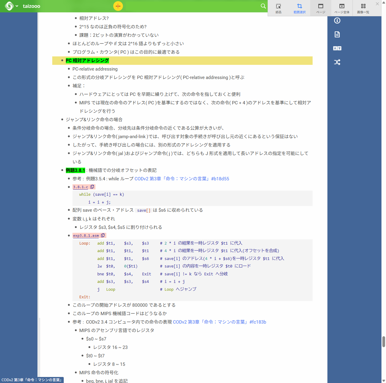 『コンピュータの構成と設計』、C 言語のソートのコード(配列に収められている数値を昇順にソートする)をアセンブルする例題が出て来て、ソートのアルゴリズム、全然知らないから(アセンブラじゃなくて C 言語の方で)ハマっている。