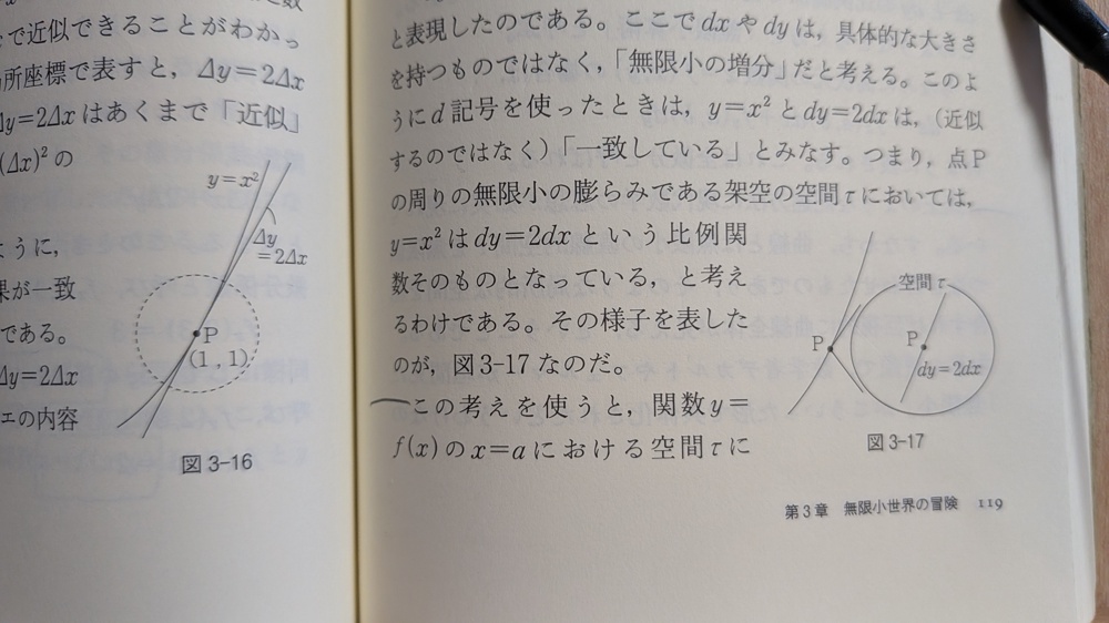 小島寛之『数学入門』、微分の章(第3章「無限小世界の冒険」)がやっと終わった。