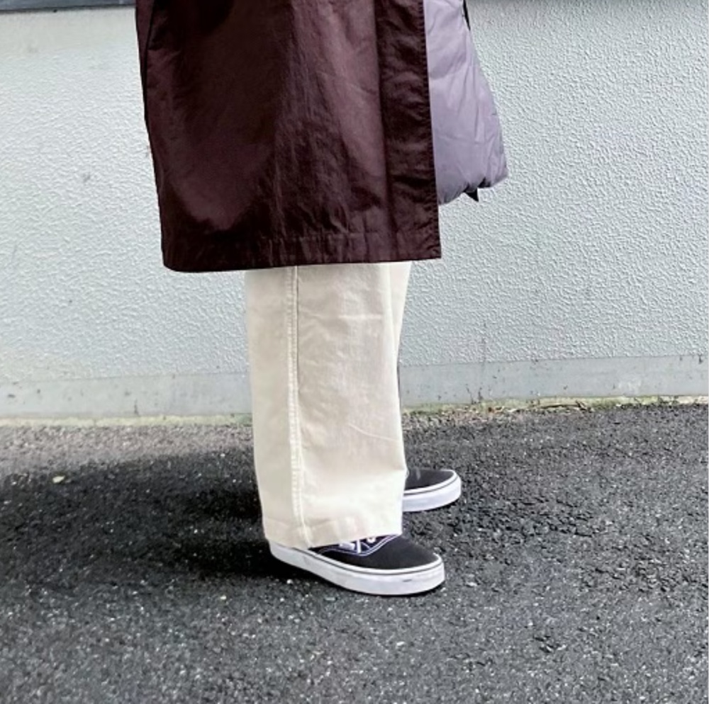 無印良品スタッフスナップです。履いているのはヴァンズ Vans の定番シューズ Era なんだけど、雰囲気がちょっと違ってて、ソールがちょっと厚い。厚底。こういうのを「プラットフォーム」と呼ぶらしい*1。