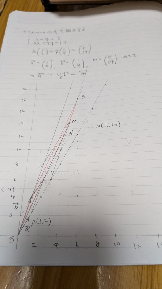 実際のつるかめ算を、まんまそのままベクトルで図示したらかなり厳しい作図になってしまってまったく理解出来ず、翌日、考え直して仮想的なベクトル表現にしたら理解出来た様子です。