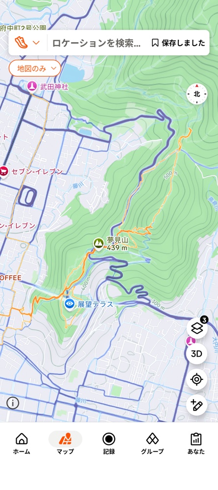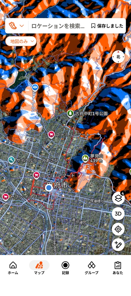 僕の裏山は秩父山系の南の端にあって、相川扇状地(その突端に要害山とか武田神社とかがある)を挟んだ東側の尾根筋で、その反対側(西側)の尾根筋が湯村山。そちらの方が裏山より断然ヒートマップが濃い(湯村山はその麓に市営運動公園があって、駐車場、コンビニなどが揃っているからか?)。